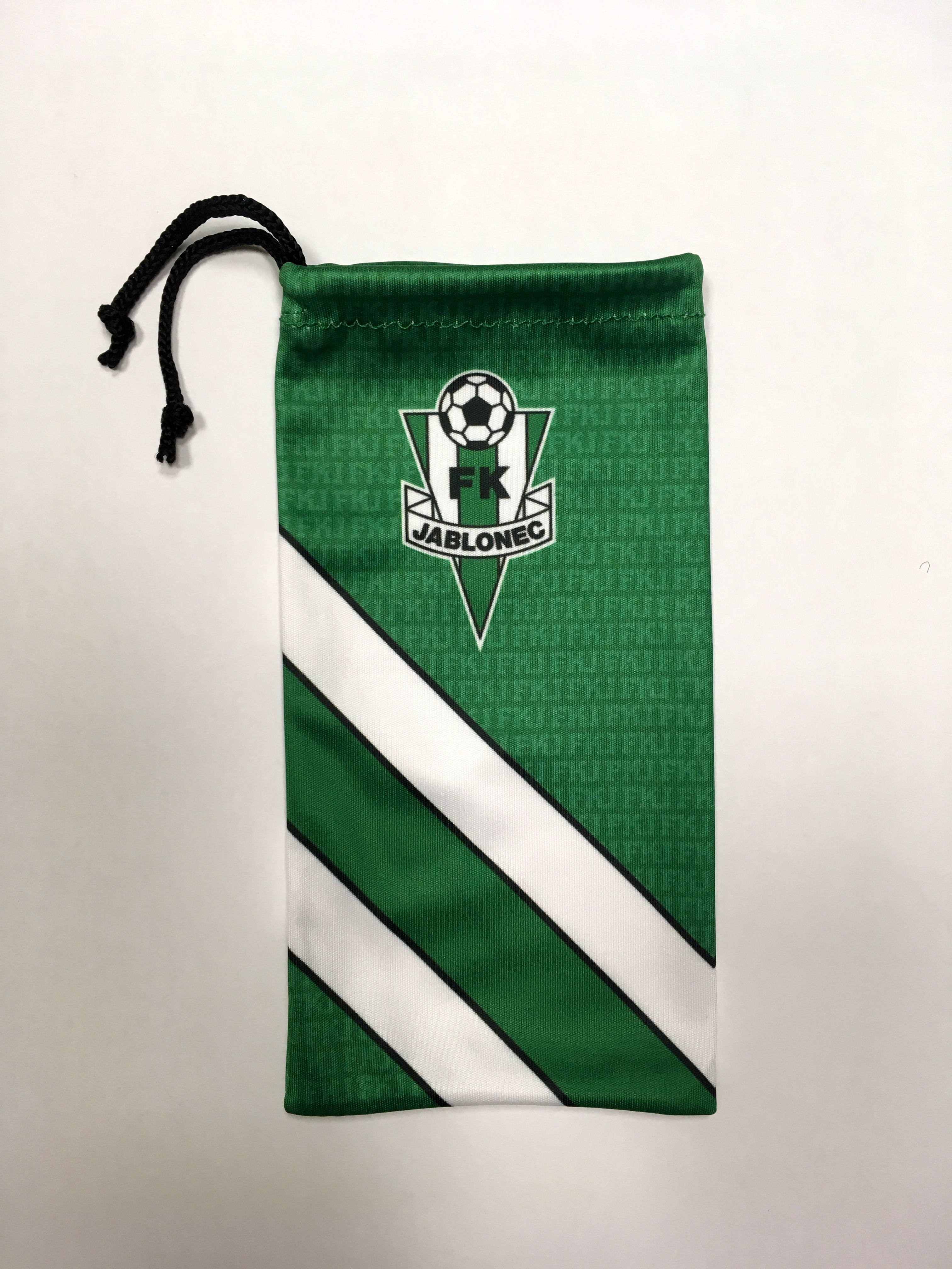 Látkový zelený obal s logem klubu a šnůrkou na stažení.Rozměr 15,5 x 8 cm.