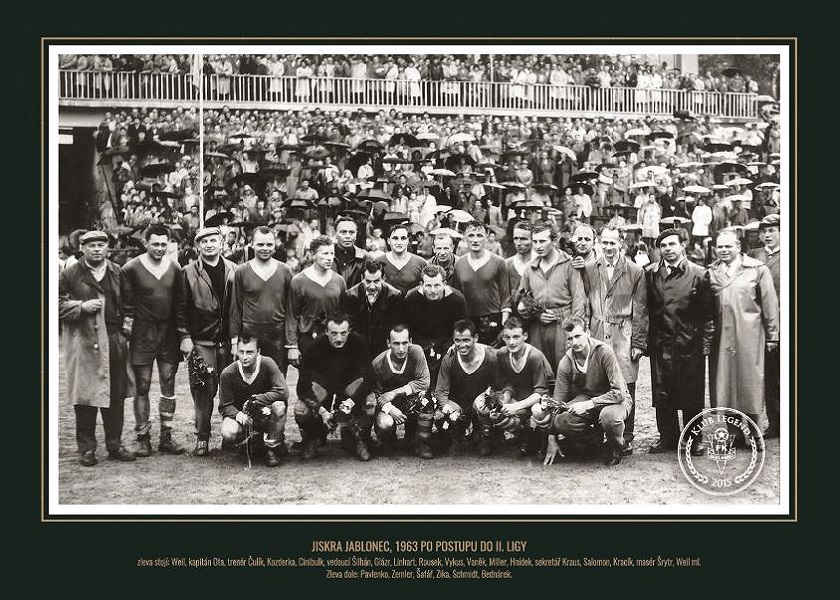 2. Tým Jiskry Jablonec vedený trenérem Čulíkem po několikaletém boji v roce 1963 slavně vyválčil postup do druhé ligy.