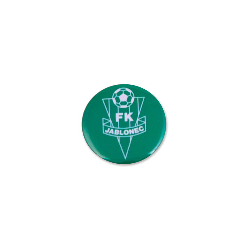 Fanouškovská placka zelená s bílým klubovým logem. Průměr 37 mm.