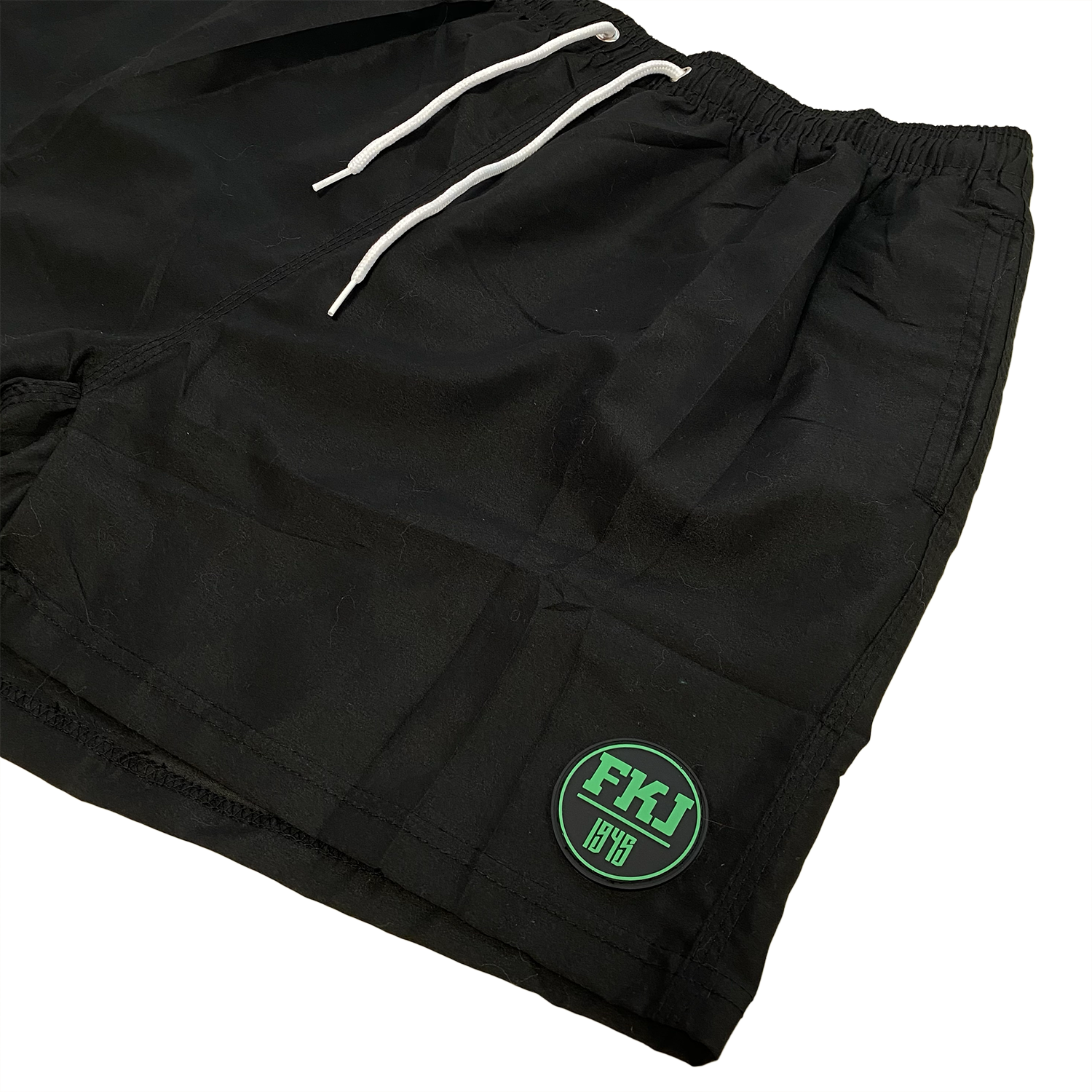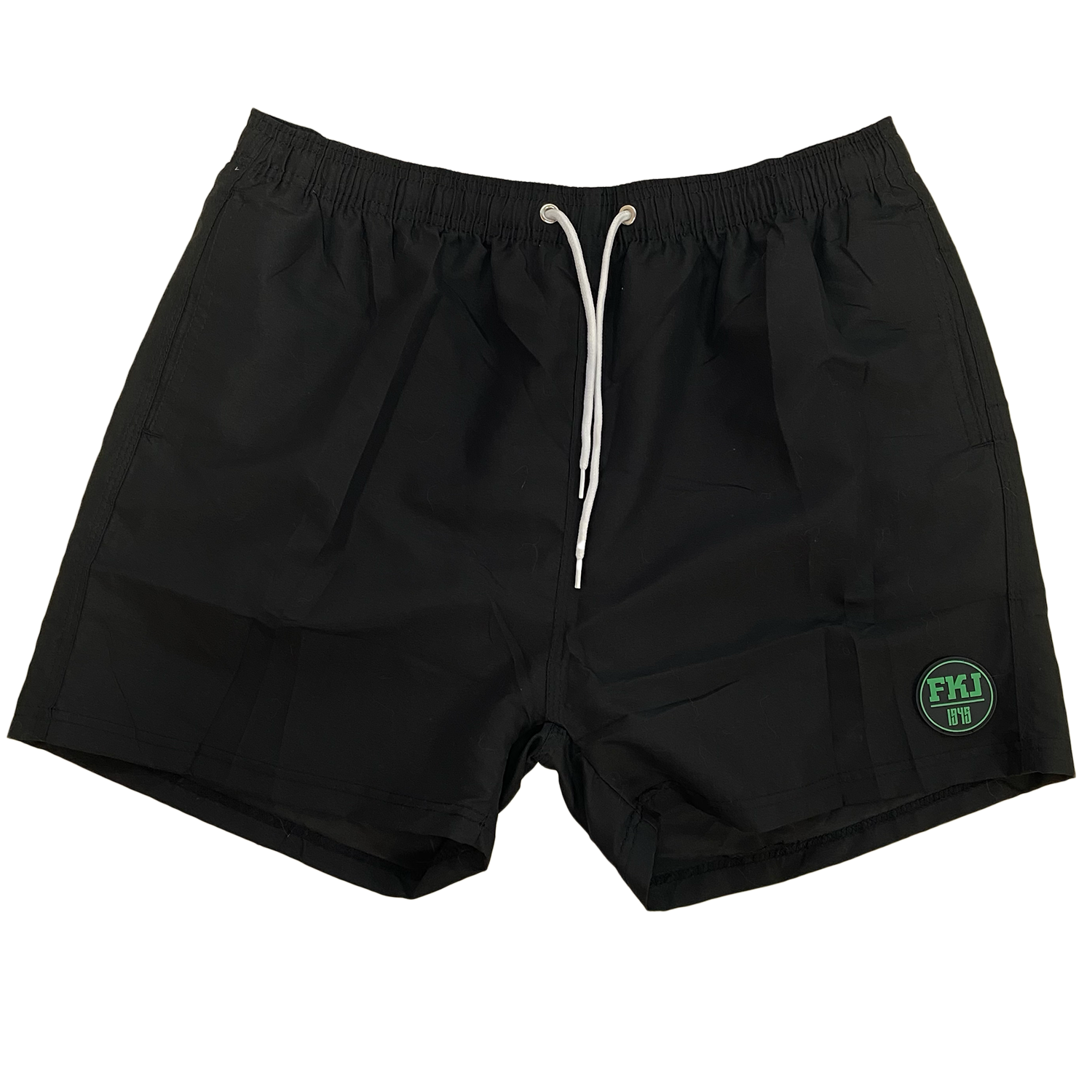 Plavky na sobě mají našité černozelené gumové logo naší nové kolekce FKJ 1945.