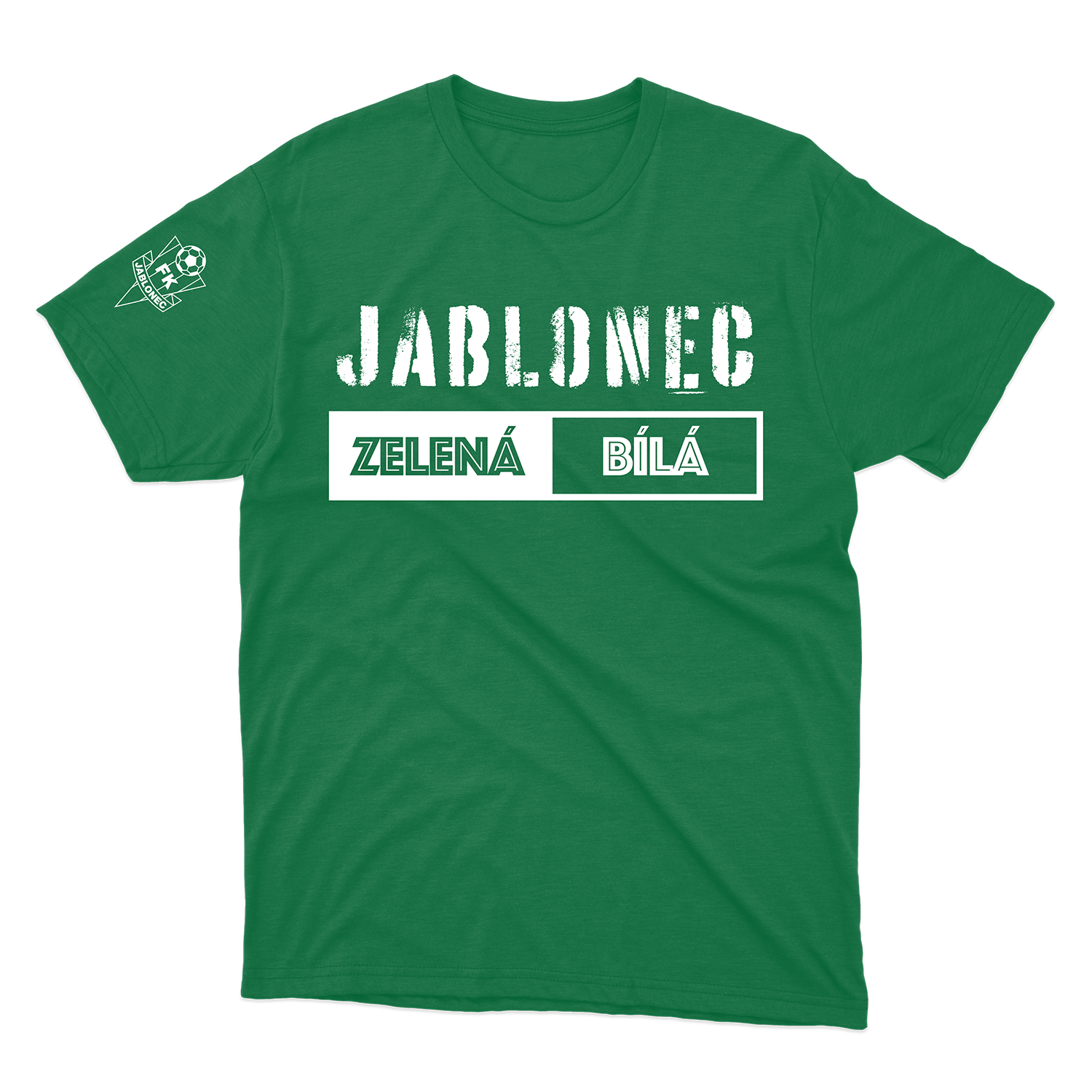 Klasické, zelené, pánské tričko s krátkým rukávem. Na hrudi je elegantní motiv ZELENÁ-BÍLÁ. Tričko je vyrobeno ze 100% bavlny a skvěle padne na každého správného fanouška Jablonce.