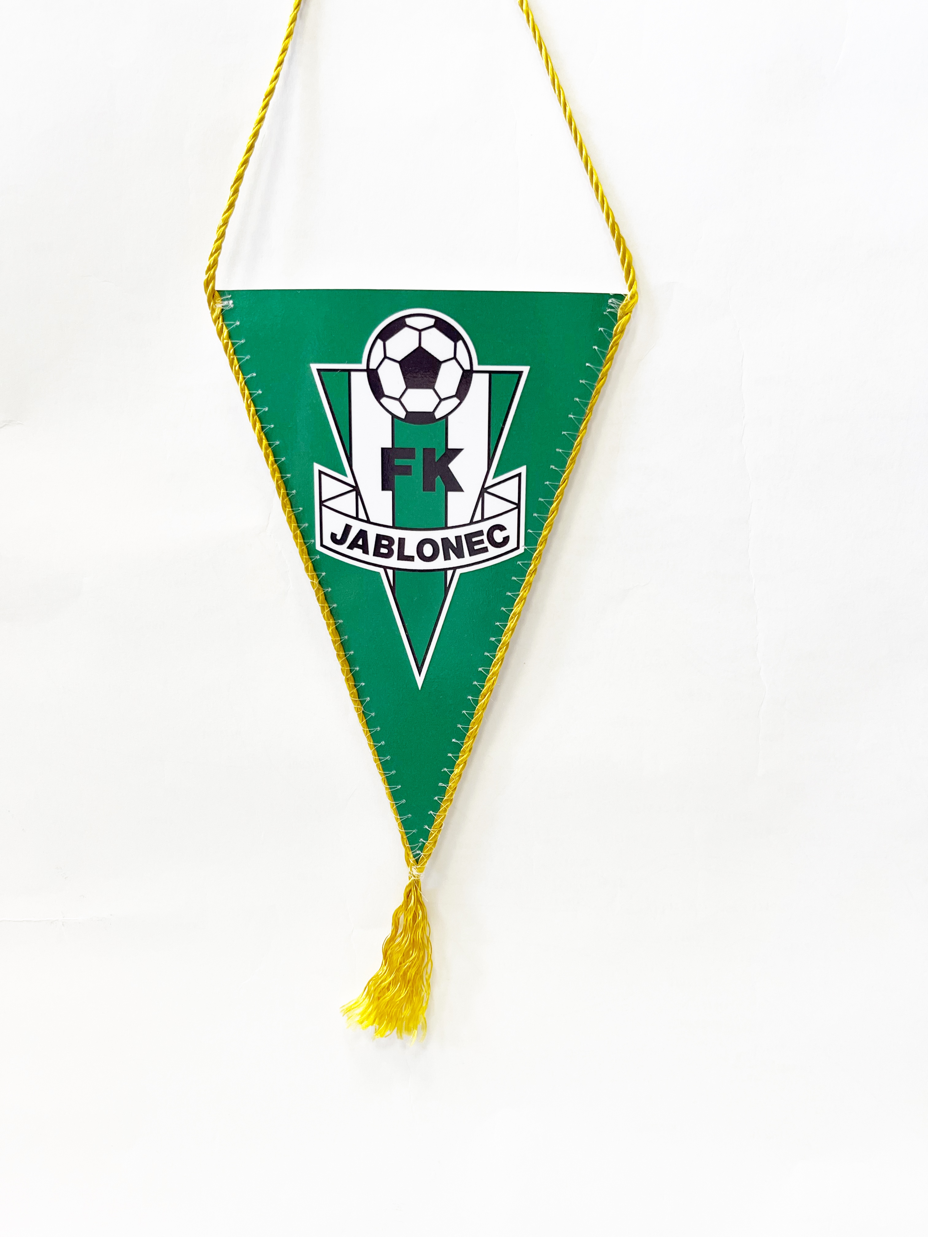Zelená vlaječka s logem klubu a zlatou šňůrkou okolo.