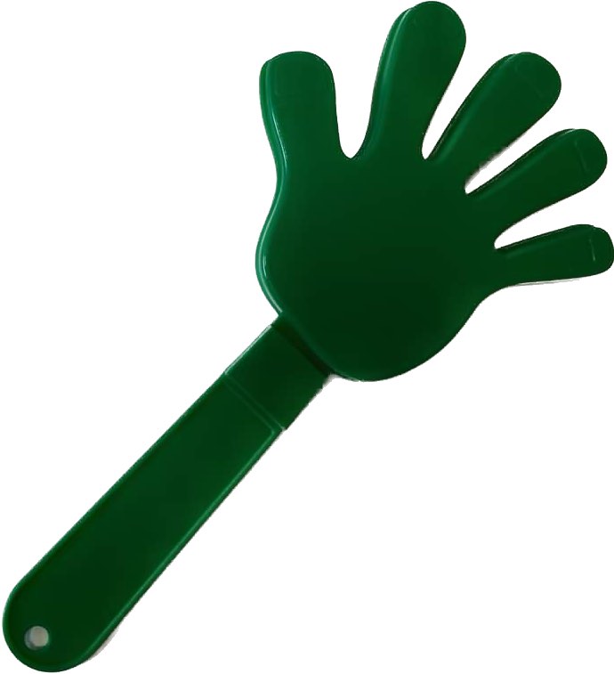 Zelená klapačka ve tvaru ruky, se kterou můžete pořádně fandit svému oblíbenému týmu!