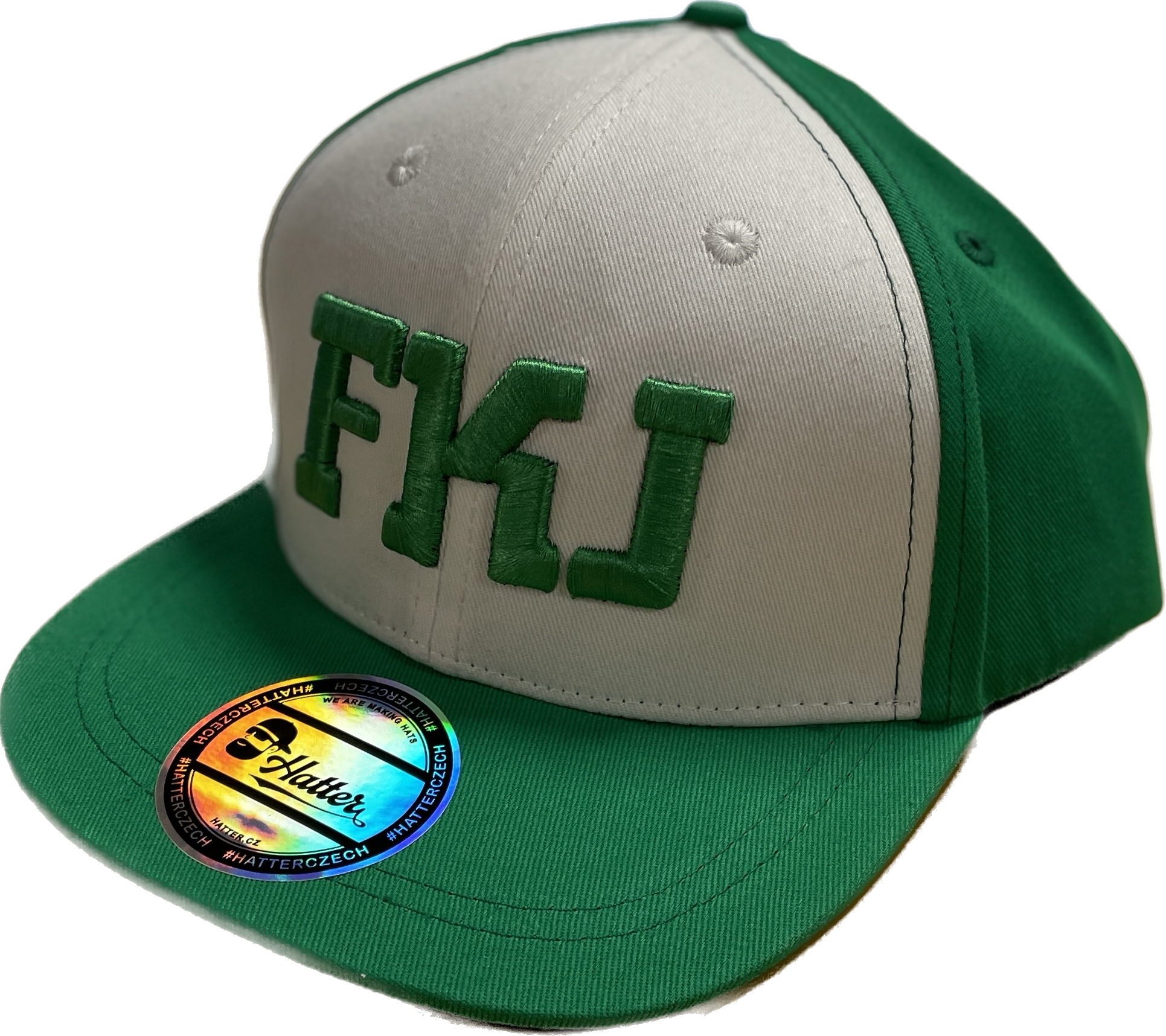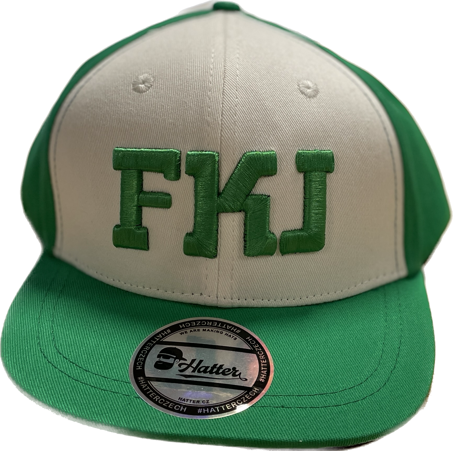 Zeleno-bílá kšiltovka s vyšitým logem FKJ a rovným kšiltem