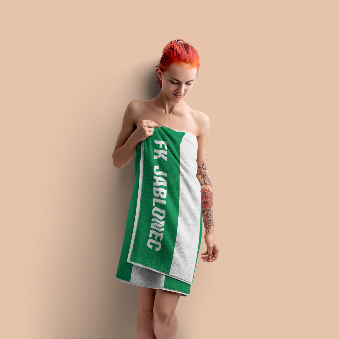 Pruhovaná bavlněná osuška s nápisem Vašeho oblíbeného klubu.