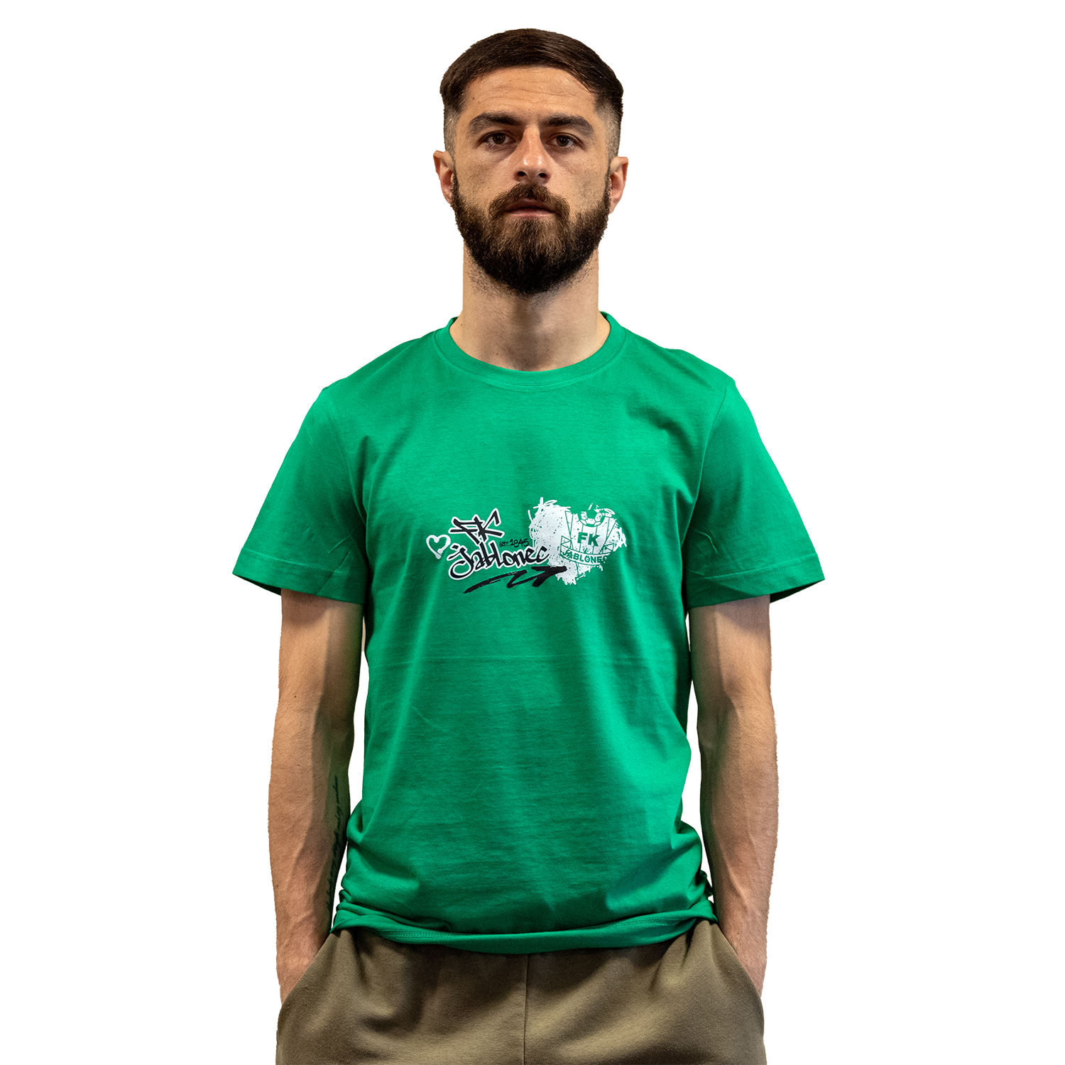 Zelené tričko s graffitovým potiskem a logem klubu.