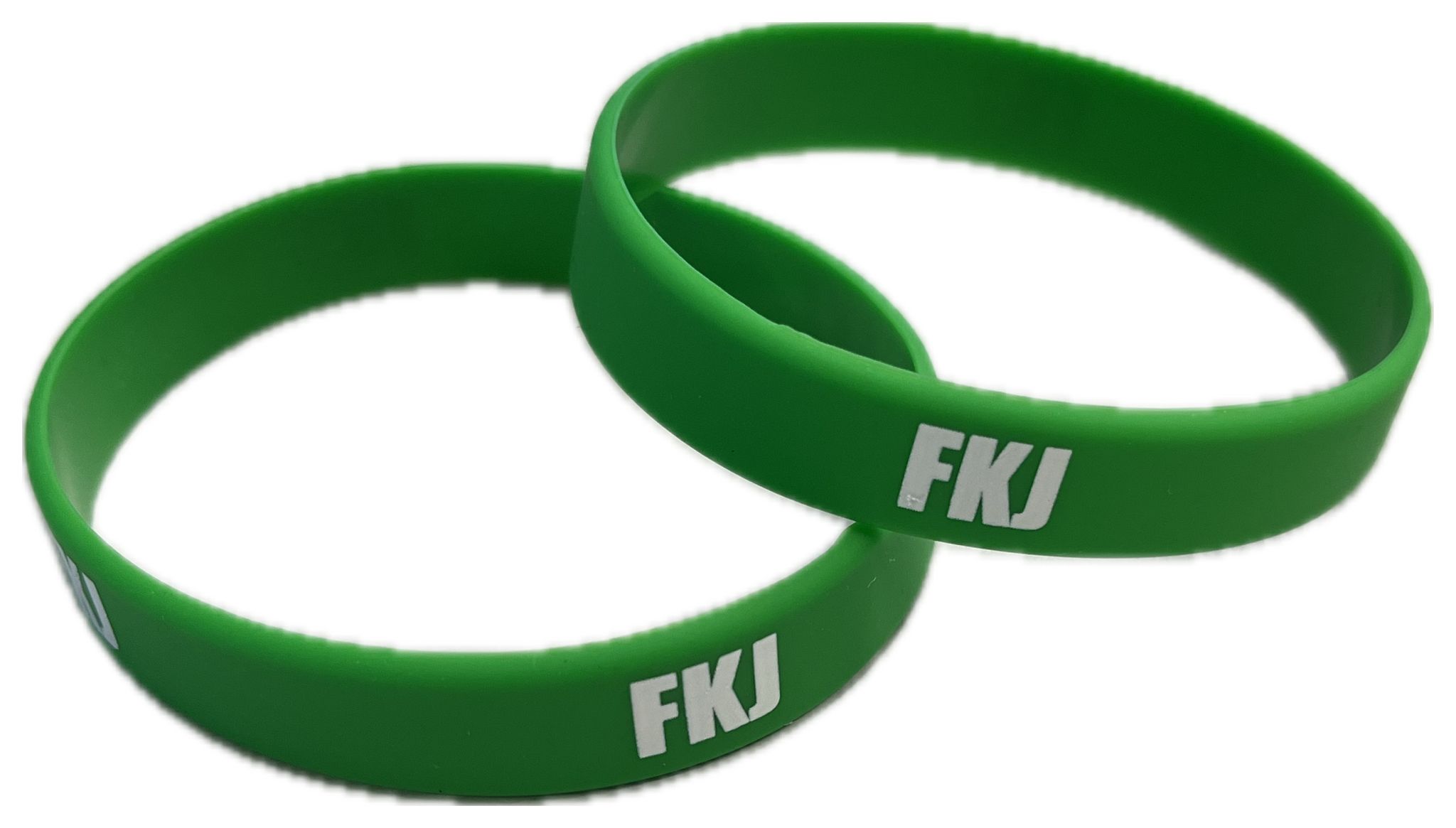 Zelený silikonový náramek s bílým nápisem FKJ.