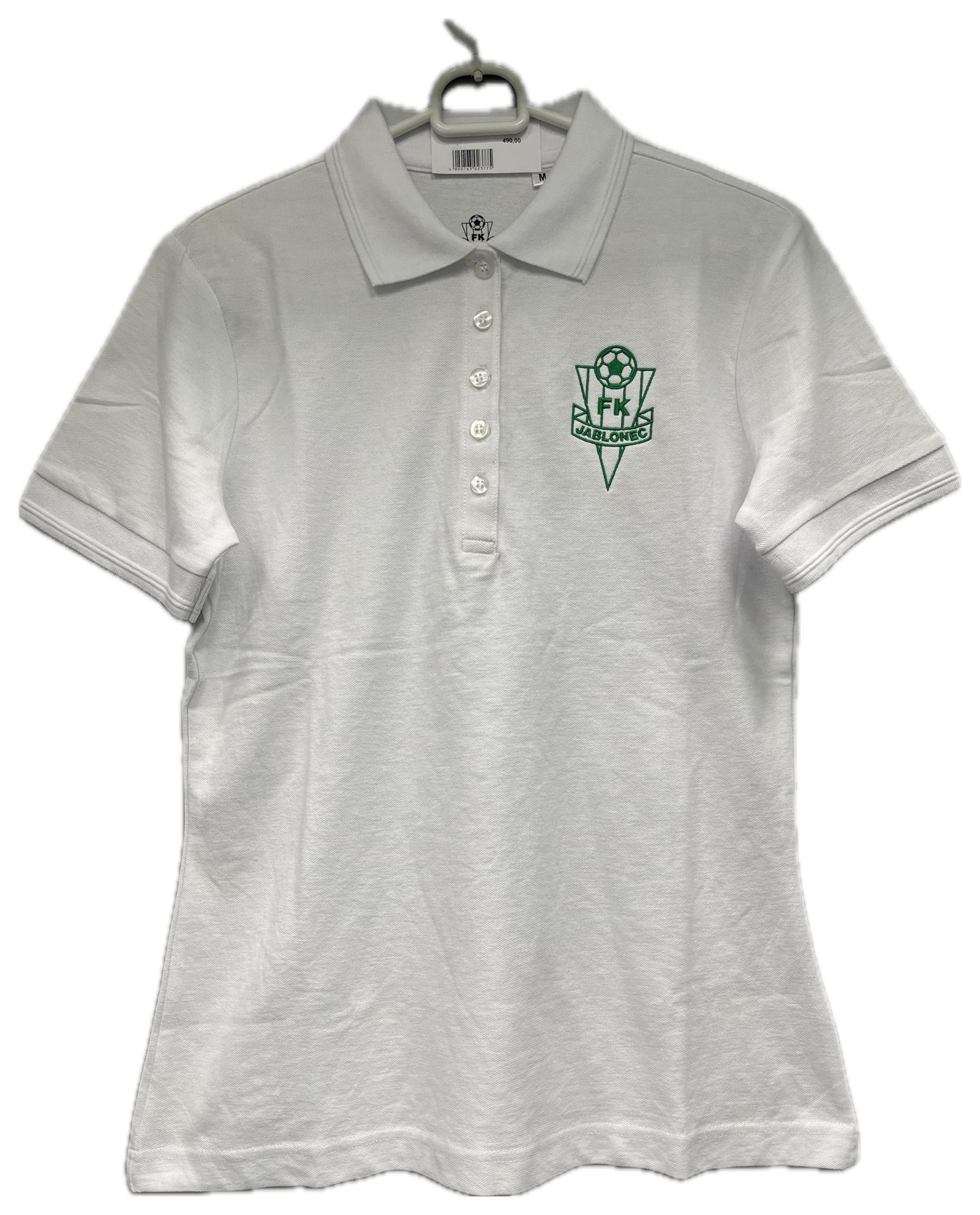 Elegantní bílé tričko se zeleným vyšitým logem Vašeho oblíbeného klubu.
