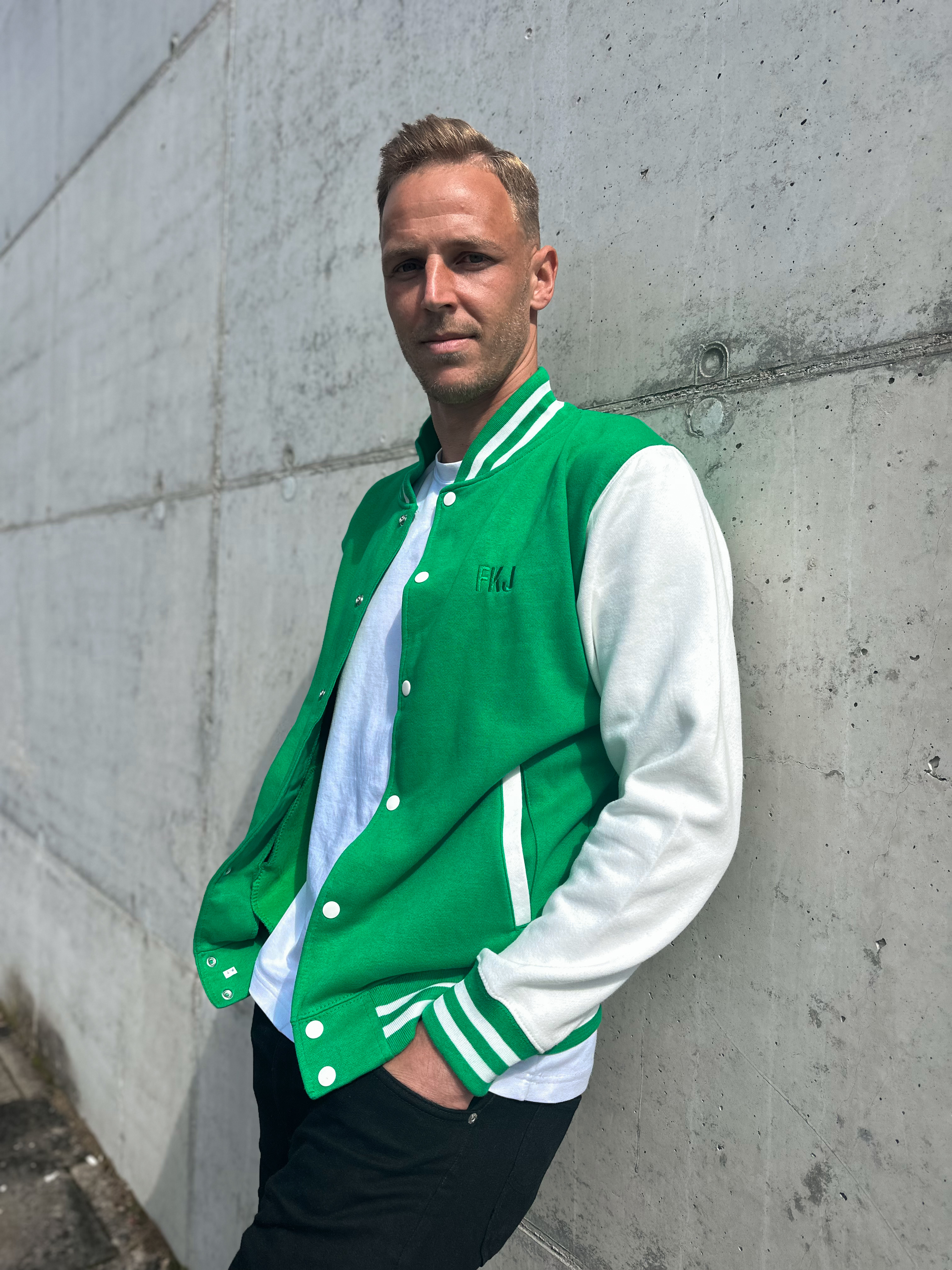 Stylový mikinový bomber s výšivkou loga na zádech.