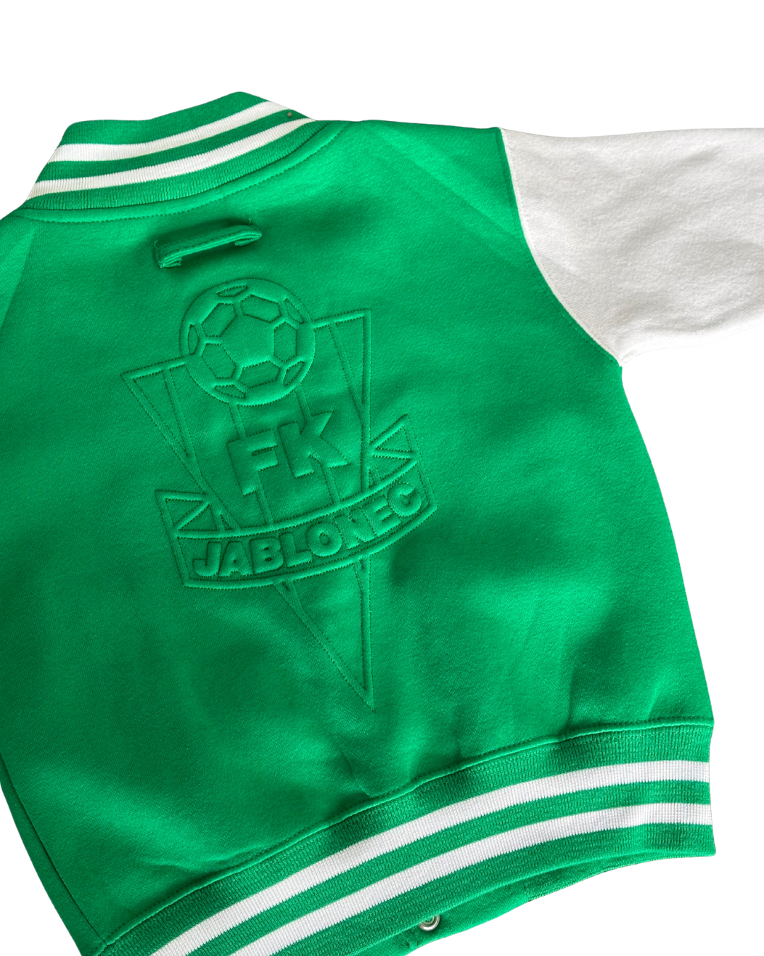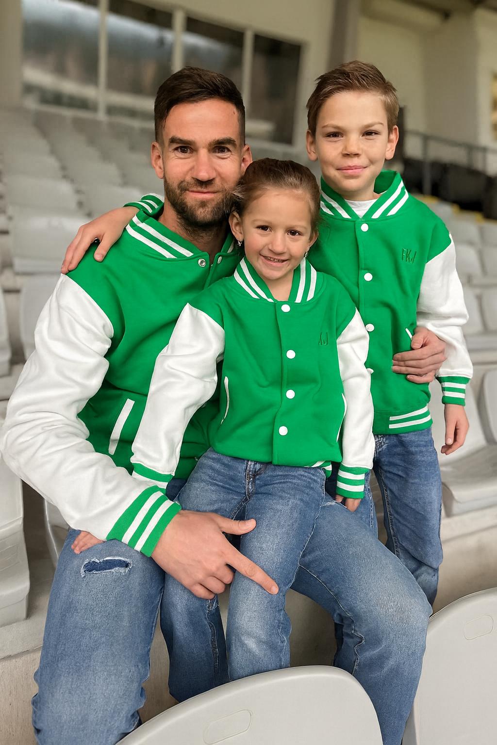 Dětský zelený bomber s vyšitým logem na zádech.