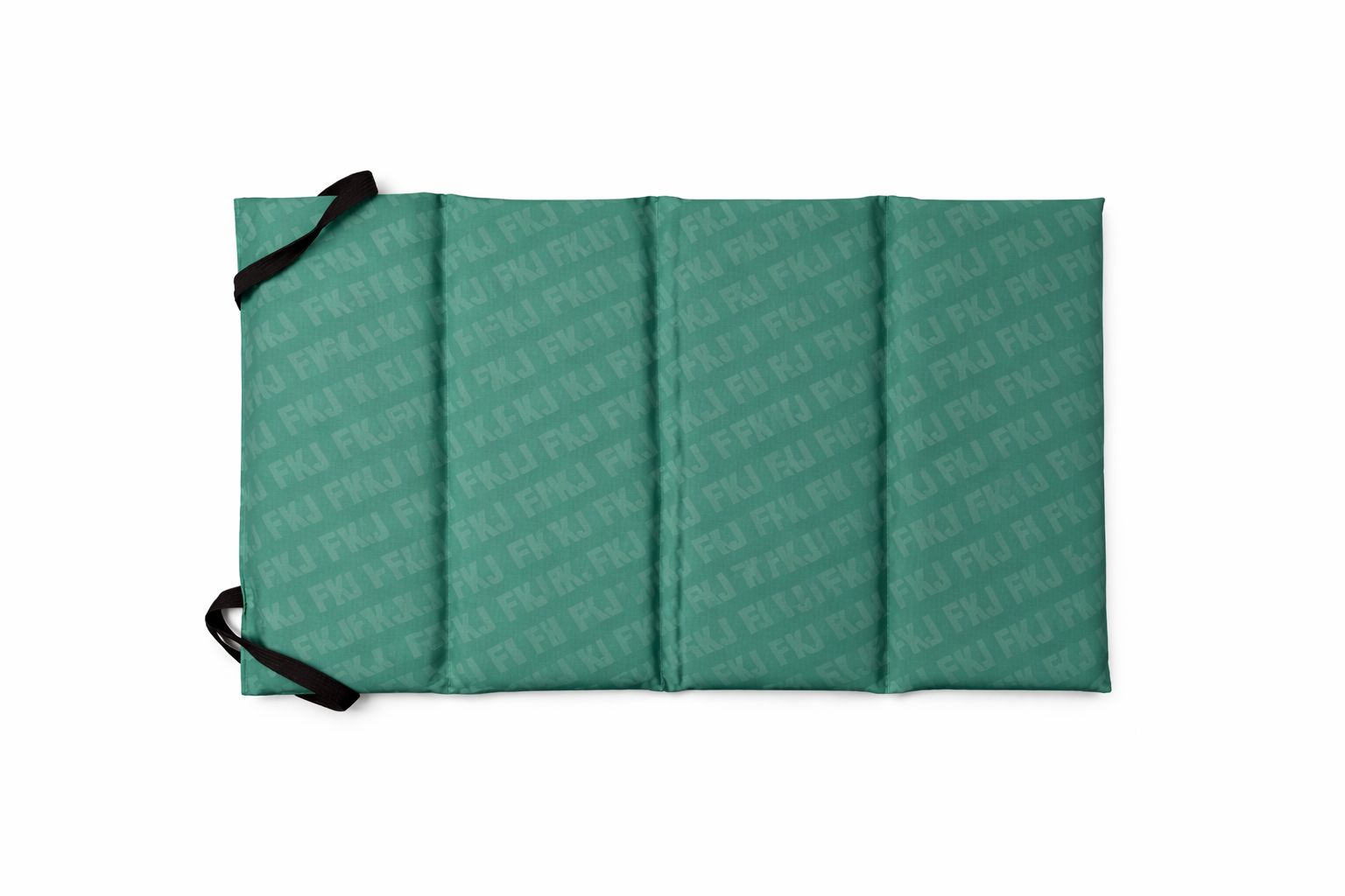 Velice žádaný skládací podsedák s nápisy FKJ po celé ploše podsedáku.